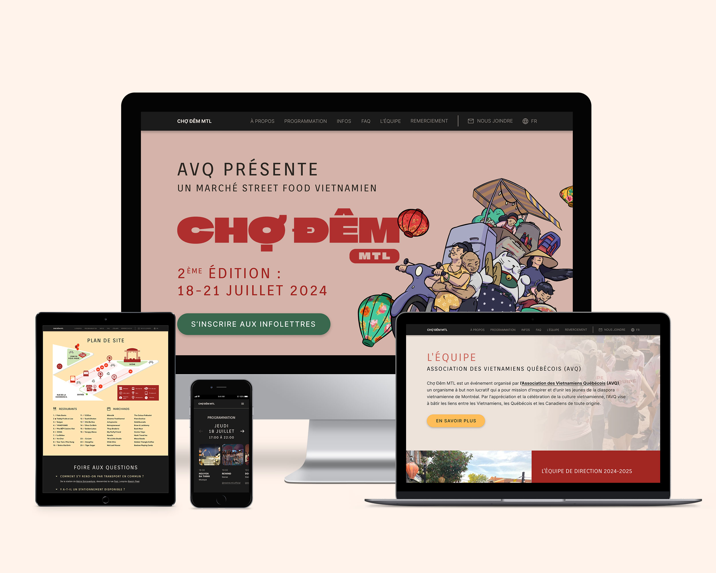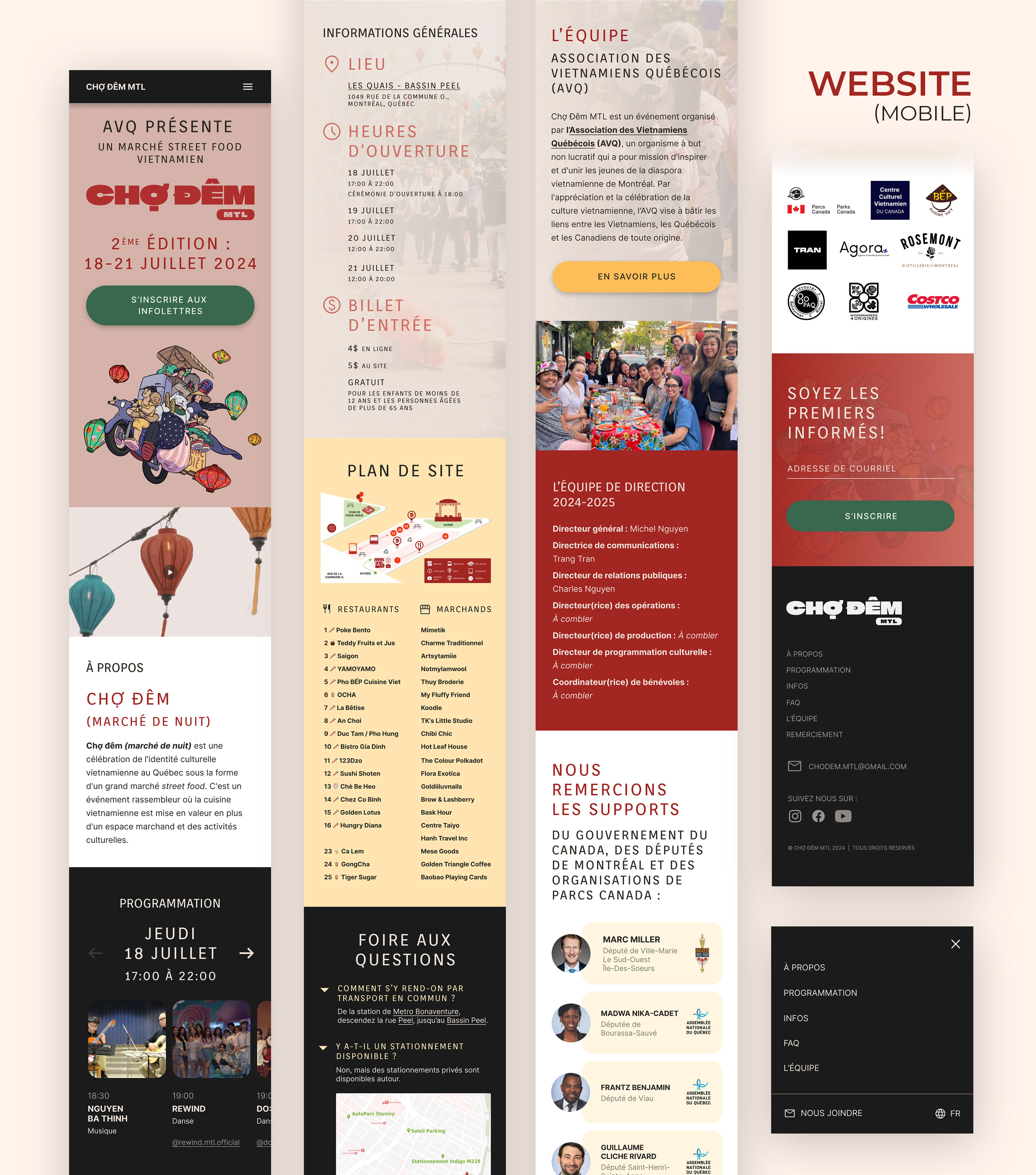 Redesigned the landing page for Chợ Đêm MTL, a local Vietnamese street food festival organized by the Association des Vietnamiens Québécois (AVQ). This project’s goal is to enhance the content and visual hierarchy as users scroll through the responsive landing page on desktop and mobile.