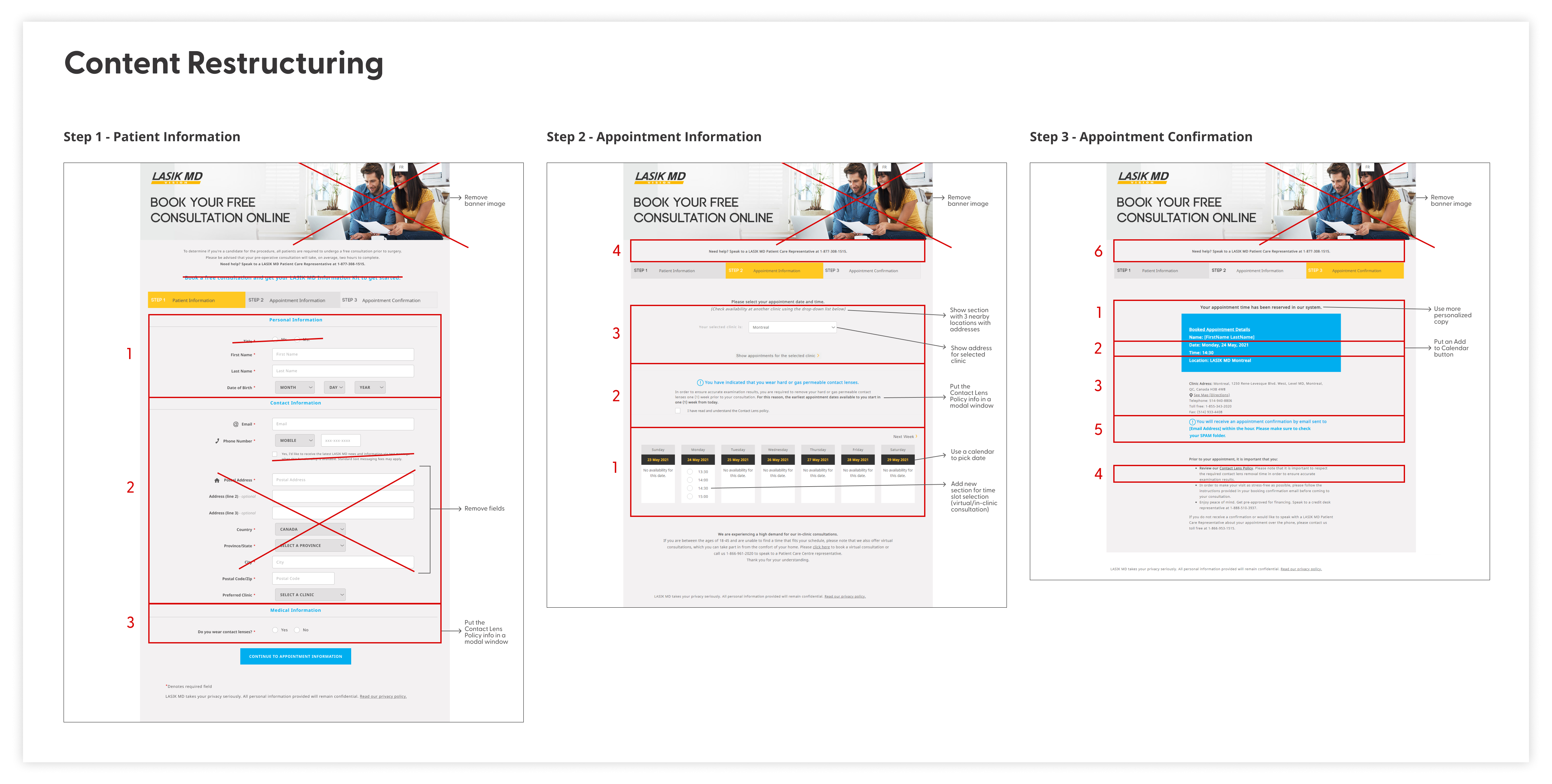 Our final solution redesigned LASIK MD’s online booking with a simplified step‑by‑step layout, clear visual hierarchy, and concise labels. To speed up form completion, we removed the age group segmentation landing page and used patient age to determine available consultations.