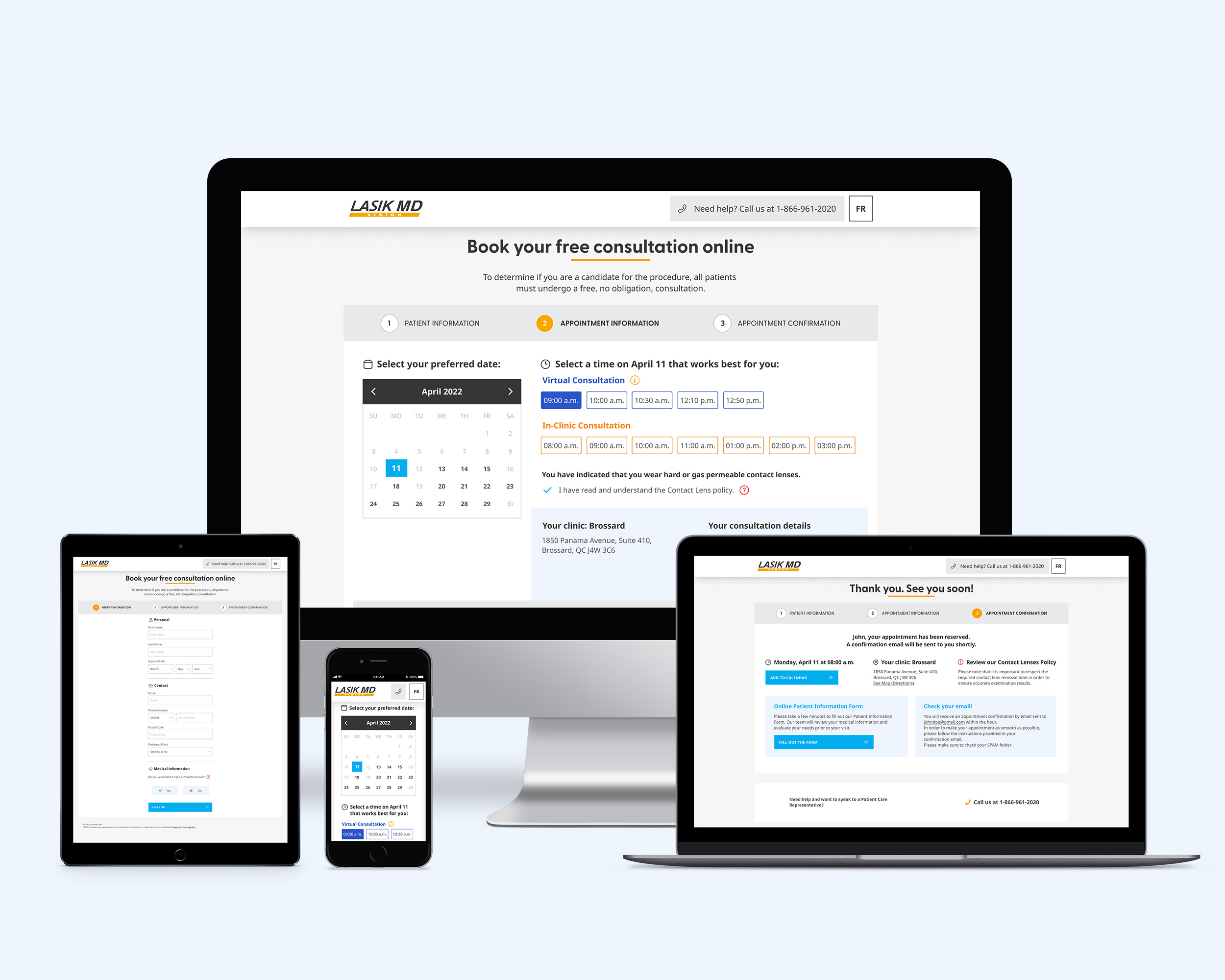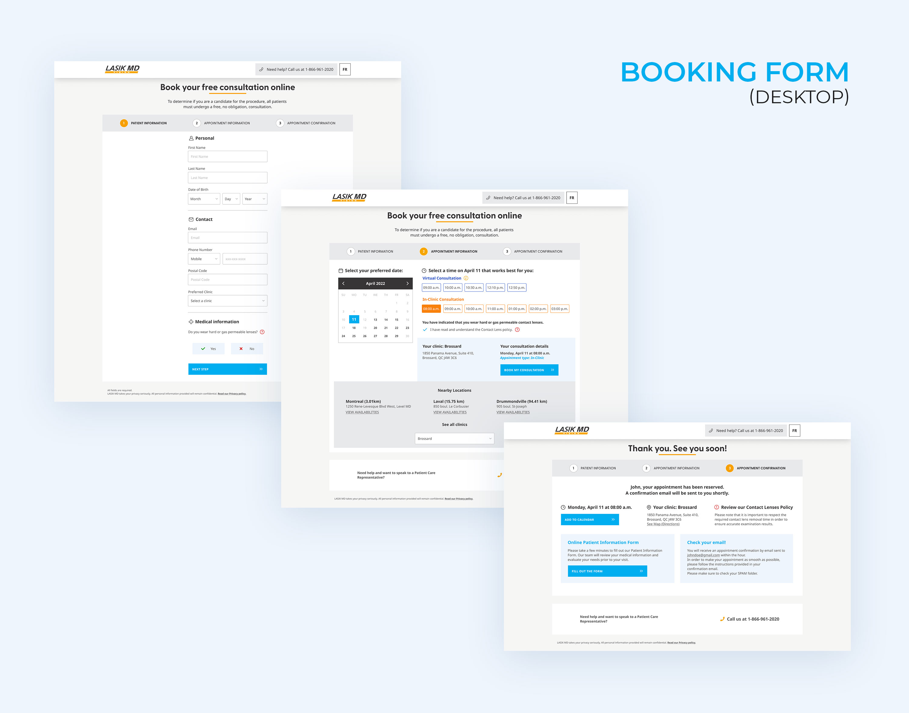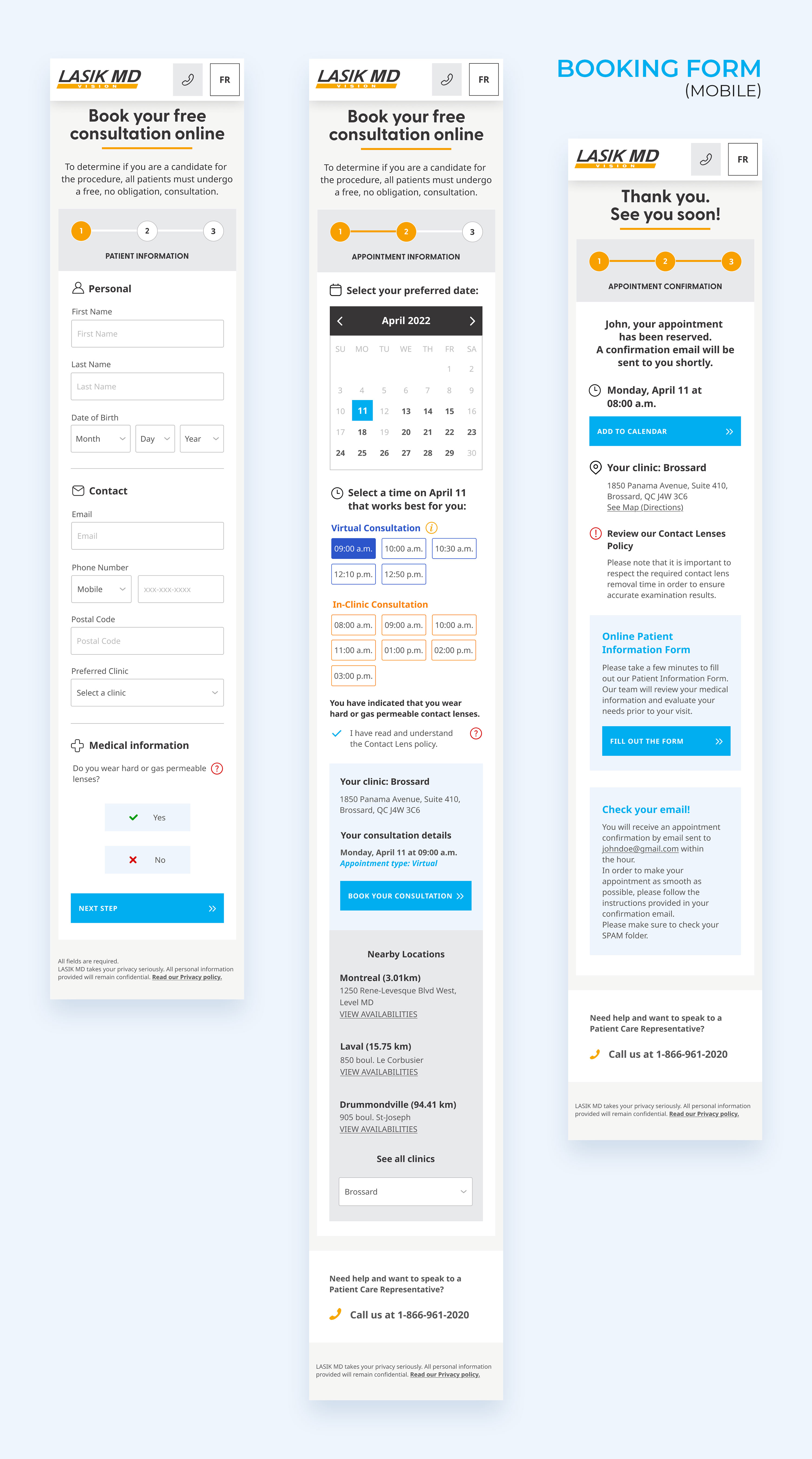 Outcome: Using the web booking form, John can easily select his preferred appointment date and time at the closest clinic, ensuring a quick and smooth booking experience for his LASIK eye surgery consultation.